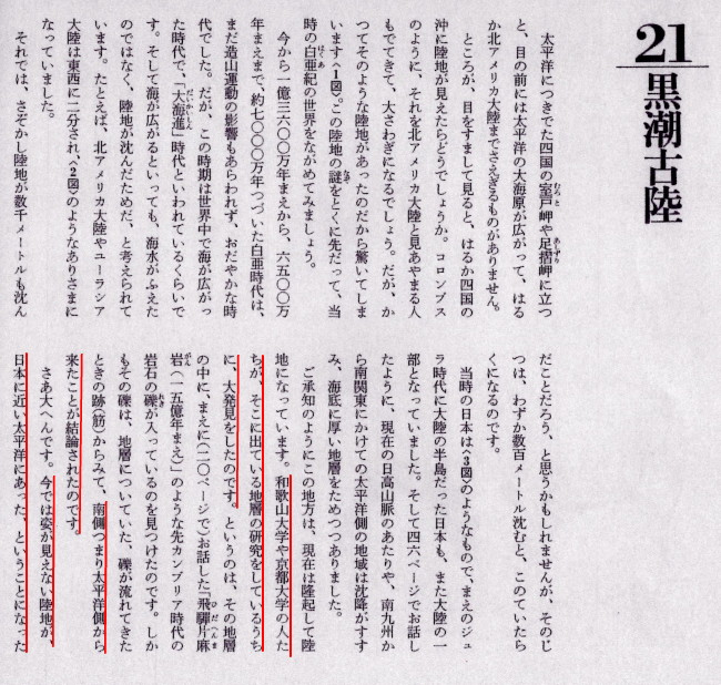 | 2592 Date: 2017-10-06 (Fri) 地質学者が研究していた黒潮古陸 地質学者が研究した黒潮古陸の話が井尻正二先生の「日本列島物語」(築地書館)に載っています。地向斜理論を支持されていた「地団体」の井尻先生の話を全面的に肯定するわけではありませんが、和歌山大学や、京都大学の先生方が「黒潮古陸」を真剣に科学者の立場で検討されていた時代があることを証明する記事ですので紹介します。 ![]() ![]() 『日本列島ものがたり』井尻正二著 築地書館 より プレートテクトニクス理論や付加体理論の矛盾が明らかになってきているのですから、「黒潮古陸」をもっと真剣に科学の土俵に載せて議論してもいいと思うのですが、現役の学者もマスコミもなんら話題にしません。『タコ壺』の中を世界と思っているような状況です。 |