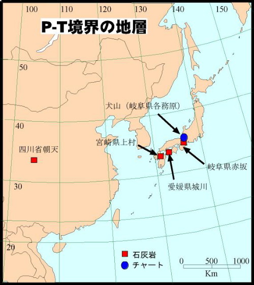 | 2605 Date: 2017-11-03 (Fri) 地球内部は固体であるという固定観念を捨てよう P−T境界をまたいで露出している地層というのは多くないそうです。露出している地層の紹介が、顕生代3:古生代から中生代へに載っていました。 ![]() 現在、P-T境界の連続露頭が知られているのは、以下の4つの地域です。 岐阜県各務原市〜愛知県犬山市 岐阜県大垣市赤坂 愛媛県東宇和郡城川町 宮崎県西臼杵郡高千穂町上村 しかし、プレート論者の解説によると、日本の南部北上地域や南中国などが陸地として画かれています。 ![]()