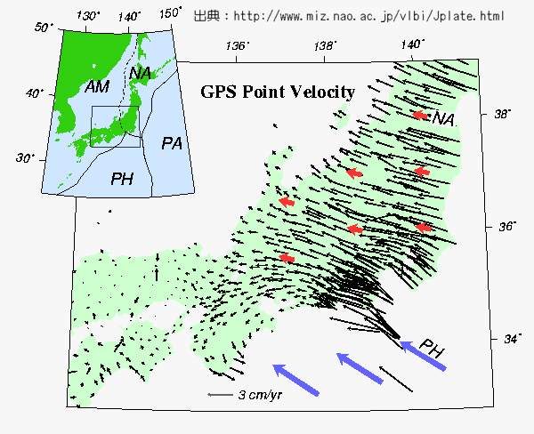 | 2598 Date: 2017-10-18 (Wed) 自然科学とは言えないプレート論 地震爆発論としては、プレートテクトニクス理論について完全に否定していますので、これ以上言及する必要はないのですが、まったく「見直し」の空気がありませんので、ネット上で気付いた矛盾点を述べておきます。 「アムールプレートの存在が明らかになったので、オホーツクプレートを無理に仮定する必要がなくなった」という記事を紹介します。 ーーーーーーーーーーーーーーーーーーーーーーーーーーーーーーーーーーーーーーーーーーーーー プレートテクトニクスが支配する惑星地球の表面では、十数枚のプレートに分かれたリソスフェア(岩石圏)の相対運動が地震を始め様々な現象を引き起こしています。日本列島に南からフィリピン海プレートが、東から太平洋プレートが沈み込んでいるのは有名ですが、肝心の日本列島が何プレートに属するかはこれまで「藪の中」でした。20年前の本を見ると日本列島全体がユーラシアプレート、すなわち欧州やアジアと一枚板になっています。15年前の文献では日本列島の真中に境界が引かれて東日本が北米プレートになっているでしょう。もっと最近の文献なら北米プレートの代わりにオホーツクプレートと書かれているかもしれません。一体なにが本当なのでしょう。 最近数年間の宇宙測地観測によってこの曖昧な状況が打破されたことについてお話しましょう。西南日本や韓国のGPS(全地球測位システム)点がユーラシアプレートに対して東向きに年間1cmほどで動くことから、その地域がユーラシアプレートの一部であることが疑われ始めたのが数年前のことです。筆者を含むグループは上記地域に加え、中国や極東ロシアに展開したGPS点の数年にわたる位置変化を解析し、これらの地域がほぼ一枚の独立したプレートとして振舞っていることを明らかにしました(Heki et al., Jour. Geophys. Res., 104, 29147, 1999)。 その範囲は従来アムールプレートと仮称されていたものにほぼ重なり、「幻のプレート」の存在が実証された格好になります。さらにアムールプレート の存在が明らかになったおかげで東日本を含む「オホーツクプレート」を無理に仮定する必要がなくなり、元通り北米プレートのままで諸データが矛盾しないことがわかりました。西日本=アムールプレート、東日本=北米プレートという構図がようやく明らかになったのです。 それらの境界は一本の線ではなく中部から近畿にかけて数百キロの幅を持っています。そこでは南からフィリピン海プレートが沈み込んでいますが、陸側は東海地震の震源域とされる静岡県東部などの北米プレート側と四国や近畿などのアムールプレート側に分かれており、沈み込み速度や地震再来周期も同じではありません。北海道南西沖地震で注目を浴びた日本海東縁はアムールプレートが北米プレートに沈み込む境界ですが、我々がその速度を約2cm/年と定量化したことはこの地域での地震の繰り返しの理解に重要です。 海溝で見られる海陸プレートの衝突では前者が後者の下に沈みこんで一件落着ですが、沈み込めない陸どうしの衝突では事態が複雑になります。東日本(北米プレート)と西日本(アムールプレート)が約2cm/年の速度で衝突している中部―近畿地方もそのひとつです。このような場合プレートの運命は(1)横に縮んで上下に伸びる、(2)小さいかけらになって横に押し出される、の二とおりです。代表的な衝突境界であるインドとユーラシアの衝突現場では上記(1)でヒマラヤ山脈とチベット高原が形成され、さらに大規模な横ずれ断層でブロック化した陸塊が押し出される (2)が同時進行しています。アムールプレートも元をただせば北上するインドが東に押し出した大地のかけらなのです。 日本に目を転じると、中部地方は山岳地帯を形成しており(1)がある程度働いていることは明白ですが、(2)はどうでしょう。アムールプレートからみた国土地理院の全国GPS連続観測点の速度を図に示します(沈み込みによる地面の変形を取り除いて見やすくしてあります)。中部から近畿にかけて東西短縮とともに南北伸張が顕著です。 つまりインド=東北日本、ユーラシア=西南日本とすると、 東に押し出されるアムールプレート=南に押し出される紀伊半島、という相似形が成り立ちます。東西短縮と南北伸張の地殻ひずみは断層の横ずれによって解放されますが、その典型例が1995年の兵庫県南部地震です。その原因は中部日本における陸どうしの衝突、その原因はアムールプレートの東進、そのまた原因はインドとユーラシアの衝突に伴う大陸塊の押し出し、さらにその原因をたどるとゴンドワナ大陸の分裂とインドの北上となります。 ![]() GPS Point Velocity 「国立天文台ニュ−ス No.85より転載」 <日置幸介> ーーーーーーーーーーーーーーーーーーーーーーーーーーーーーーーーーーーーーーーーーーーーーーー アムールプレートに関しては[2313]、[2314]でも「SF小説並み」だと紹介しました