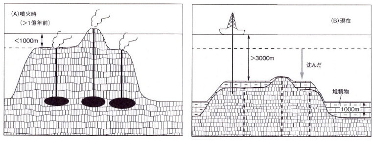 | 2721 Date: 2018-04-07 (Sat) 再度の批判・ダーウインの「サンゴ礁沈降説」の矛盾 東北大学大学院理学研究科地学専攻地圏進化学講座のサイトに「炭酸塩堆積学・地球化学グループ」の報告がありました。サンゴ礁と海山の関係をわかり易く解説してありましたので抜粋して紹介します。 [2719]にも紹介しましたが、石田理論とはまったく違うダーウインの「サンゴ礁沈降説」などを中心にした解説です。学会では、これが定説として流布している考えなのでしょう。 ーーーーーーーーーーーーーーーーーーーーーーーーーーーーーーーーーーーーーーーーーーーーーー はじめに 進化論の提唱者として知られるチャールズ・ダーウィンは、1842年に出版した名著「サンゴ礁の分布と構造」において、サンゴ礁を地形上の特徴に基づいて裾礁、堡礁、環礁に分類し、その成因としてサンゴ礁の沈降説を提唱しました。この説を検証するために、19世紀後半から20世紀前半にかけて、世界各地のサンゴ礁、特に海洋島でボーリング調査が行われました。 ![]() ダーウィンの沈降説 熱帯〜亜熱帯海域でみられるサンゴ礁は地形的な特徴に基づいて裾礁、堡礁、環礁に区分されます。 裾礁:島などの陸地のふもとに直接発達したサンゴ礁。 堡礁:島などの陸地との間に礁湖が存在するサンゴ礁。 環礁:環状の形態をもち、中に礁湖を有するサンゴ礁。 ダーウィンは、サンゴ礁がこのような3つの地形をなす理由を説明するために沈降説を提唱しました。沈降説とは、サンゴ礁はまず火山島の周辺に裾礁として形成され、火山島がゆっくりと沈降するに従って堡礁へと代わり、ついには環礁となるとする説です。現在の沈降説は、「プレートテクトニクス」の視点を加味し、より洗練されたものになっています。 ![]() 島の沈降に伴うサンゴ礁の形態の変化 1942年、H. H. Hessが北西太平洋から160 個の頂部が平担な海山を発見し、19世紀の地理学者Arnold Guyotにちなんでそれらをギョ—(平頂海山又は卓状海山)と命名しました。ギョ—の頂部は現在1、000 m以上も深いところに沈んでいますが、そこからは白亜紀などに形成された石灰岩が採取されます。したがって、ギョ—は長い年月をかけて浅海域から1、000 m以上も沈降したことになります。 1981年、W. Schlagerは、 礁・炭酸塩プラットフォームの溺死のパラドックスを提唱しました。そのパラドックスとは、「礁の成長速度は島の沈降速度や海水準変動(上昇)よりも1桁速いので、礁は水没することなく海山(火山島)上で成長し続けることが可能なはずである。しかし、現在の海洋底には溺死したサンゴ礁が多くみられる。これらは、礁が、何らかの要因により成長活動を停止し、海洋プレートの沈降によって水没したことを意味する。」というものです。 礁の成長速度と海洋島の沈降速度の問題に関しては、今日まで多くの研究が行われてきました。しかしながら、この問題を解決するには至っておらず、私達に解明が委ねられています。 ![]() 礁ならびに炭酸塩プラットフォームの溺死 『干出ダメージ説』(省略) 『富栄養化説』(省略) 『墓場説』 (省略) このような仮説の検証のためには、海山や海洋島を掘削し、礁・炭酸塩プラットフォーム堆積物を採取する必要があります。近年では、炭酸塩堆積学・地球化学の進歩により、連続性のよいコア試料さえ得られれば、熱帯浅海域での海洋環境の変遷を高精度で解析できるようになっています。また、掘削技術も向上しています。よって、現在は、サンゴ礁の生涯を描き出すというダーウィン以来の夢を実現する絶好のチャンスであるといえるでし eqlog2711-2730.html ょう。 今後の課題と目標 北大東島におけるサンゴ礁の形成開始は、四千数百万年前まで遡ると推定されており、現時点では、島の歴史の前半部が未解明ということになります。 ーーーーーーーーーーーーーーーーーーーーーーーーーーーーーーーーーーーーーーーーーーーーーー これまでに解説してきたように、サンゴ礁沈降説では合理的な解説は出来ないように思います。 ボーリングによるコア調査は重要ですが、基本的なメカニズムを見出さないと、調査結果を正しく解釈することが出来ないのではないでしょうか。 たとえば、エニウェトク環礁のボーリング調査では1300m以上も石灰岩が存在します。したがって珊瑚礁が沈降していると解釈したくなりますが、環礁の高さは5000mもあり、その下に火山性の玄武岩が存在する可能性があります。白亜紀という長い年月の間に完成した土台のギョーが、沈降したのではなく、その後1300mの珊瑚が形成されたと考えられます。 ダーウインの「進化論」はやがて破綻が明らかになるでしょうが、「沈降説」も破綻が見えています。 [2718]で解説したように、ギョーと環礁は共に、氷床にできる氷底湖内の火山活動で誕生するのです。やがて氷床が溶け去ったときに、サンゴが生育できない環境、つまり深海なら、ギョーになり、造礁サンゴが成育できる環境、つまり