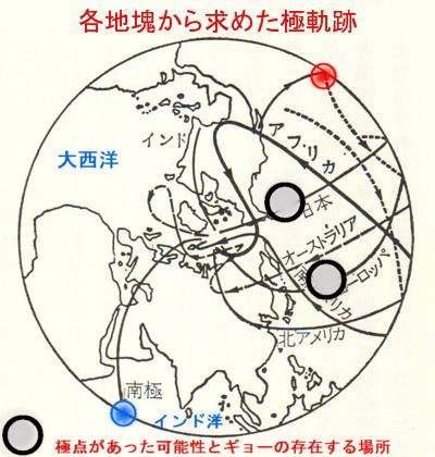 とすれば、一方の極(南極)は地球の反対側にあるはずです。その位置は地球儀を見ると、現在の南大西洋に相当します。アフリカ大陸と南アメリカ大陸とは、繋がっていた可能性が高いですから、[1807]のPS部分で述べた推定、すなわちアフリカ南部や、南アメリカのギアナ高地(の平頂火山)などは、当時の南極氷床下で誕生した可能性が見えてきます。 -------------------------------------------------------------------------------------------------------------- しかし、同じように分析すれば、赤丸印で示す太平洋の赤道付近に北極があったときは、南極はインド洋の青丸印にあったはずです。南極の岩石から辿った軌跡ではインド洋に極があった可能性もあります。したがって、モルジブ諸島付近に氷床が広がっていた可能性は存在します。ただし、白亜紀のように長期間移動しなかったのではなく、短期間で極域から脱したのではないでしょうか。 モルジブ諸島を形成している環礁は何時の時代かに、この地域が極域に入り氷床が広がっていて、その氷底湖ないで形成された可能性は十分にあります。 大陸は浮沈を繰り返していますし、分裂もしています(定説で言われるようなものではないですが)。また、岩盤がゆがむ事もありますから、”極移動軌跡”も高い精度のものとは言えませんが、凡その推定には役立つのではないでしょうか。 |