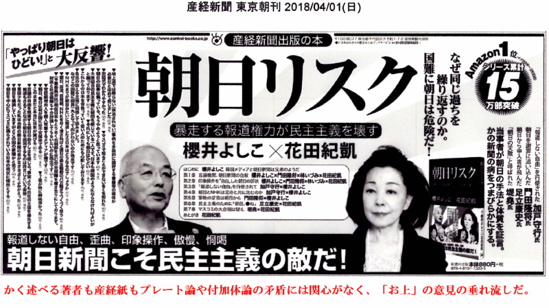 | 2715 Date: 2018-04-02 (Mon) NHKや朝日新聞の偏向が許されない時代 NHKや朝日新聞の偏向報道が批判を浴びる時代になって来ました。数年前には東京新聞(中日新聞)に偏向報道を正せというデモ行進をやったこともありますが、当時は“営業権の自由”だと回答していました。 やがてもっと大きな声になってくるのでしょうが、「マスコミの敗北」という主張がありましたので、紹介します。 ーーーーーーーーーーーーーーーーーーーーーーーーーーーーーーーーーーーーーーーーーーーー 時事ネタを切る マスコミの敗北 では、マスコミの敗北という現象が生まれた理由を一つ一つ見て行こう。 1、報じない自由の崩壊 これが決定的な理由だ。先のアメリカ大統領選挙を見ても、9割以上のマスコミが支援したヒラリーが負け、ほぼ全てのメディアに否定されたトランプが勝ってしまった。これは何故なのか?その理由は報じない自由の崩壊に他ならない。 報じない自由と言うと聞きなれない言葉かも知れない。だが、報じる自由があれば、報じないほうの自由もあると言う話。そして、マスコミが第4の権力と言われ大きな力をもつのは、この報じない自由による部分が大きいのだ。今までは報じるか報じないかは報道の自由だと言えば、都合の悪い情報は一切表に出さない事ができた。 そのため、叩かれたくない企業が頭を下げたし、政治家もマスコミの規制には及び腰になる。マスコミを叩かないから、自分も見逃して欲しいという取引だ。報じない自由がマスコミに大きな力を持たせる事が理解できるだろう。マスコミは報じない自由を駆使することで、自分たちにとって都合の悪い情報は知らせずに運営されてきたのだ。 それが今、ここに変化が起きている。ネットによってマスコミが意図的に伏せた情報が暴露されてしまうのだ。こうなると、マスコミによる情報操作は効かなくなる。今までは例えばTV、新聞さえ押さえておけば情報操作できたが、間違った事を言おうものならインターネットで反論され周知されてしまう。そして、TVよりインターネットのほうが情報が早い事もよくあり、プレスコードのような規制がない分、ネットでは本当の事を言う場合が多い。そんなこんなでマスコミの敗北という現象が起きている事を理解しよう。 2、誰でも一次情報に当たれる トランプ大統領のTwitterが良い例だが、今やだれでも一次情報に当たれる時代だ。昔ならトランプ大統領と国民の間にマスコミが入っていたため、国民がマスコミというフィルターを通してしかニュースに触れられなかった。それが、今やマスコミを抜いて直接情報を得られるのだから、マスコミが死活問題になってきたのが想像できるだろう。 この流れは基本的にもう止められない。規制を掛ければというアイデアもあるだろうが、レガシーメディアが信用をなくした状態で規制をかけてもしょうがないし、国民に直接情報を発信できる利便性は政治家にとっても悪い話ではない。今までは何を書かれるか分からないとおびえたわけだが、これからは自分で情報を発信できるのだから反論もしやすいだろう。(メディア自身の影響力が下がるわけだし) 3、誰でも情報発信できる ネットでは誰でも情報発信できる。そこを利用した一部の専門家が率先して正確な情報を発信しており、レガシーメディアの情報操作が効かなくなっている理由の一つとなっている。ネットの情報発信の手軽さがレガシーメディアの情報独占を強制的に解いてしまった。 4、ネット利用者の増加 日本だけでも1億人と言われ、歩きスマホが社会問題になるくらいネット利用者が多い。ネット利用者はネットから情報を得る場合が多く、それがレガシーメディアを無力化させている要因の一つだ。ここら辺を考慮してか、最近はTV放送をネットでも配信すると言うサイマル放送も多く行われているが、プレスコードを守って情報をゆがめている事が周知されている以上、何処まで効果があるか興味深い。 また、ネット利用者がSNSや掲示板などで交流するようになった結果、ネットによる情報拡散も無視できなくなっていて、ネットで騒いでいるニュースを後追いでTVが報じ始める事もある。情報の鮮度でレガシーメディアが後手に回っている場合もあるのだ。 マスコミの敗北の理由を4つ書いてみたが、要はマスコミに変革の時が訪れたという事だろう。本来、メディアはお互いを批判し監視しあって良いはずだ。それが独占と既得権益の大きさゆえ、なれ合いになっていた。そこにネットいう監視者が現れ、今までのようにいかなくなってきた。ネットはもはや第5の権力だ。 変化できないなら淘汰されるだけになるマスコミ業界は、これからどう再編されるだろうか?今まで大いに影響力を行使してきた新聞社も押し紙訴訟でつぶされるかも知れないし、NHKも反日放送が多すぎるため存在意味を問う抗議集会が行われている。広告代理店の電通にも捜査のメスが入っているし、今までならあり得