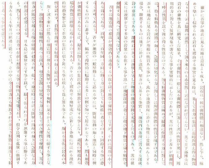 やがて世間の笑いもの マントルが固体だなんて年配のおじさんたちは怒り心頭です。そんな地震学者、地球物理学者に、そして、それをタレ流す報道関係者に「アホか!」といいたくなります。猛省を求めます。 恥をかかされた女の子は親父さんから聞いていたのではないでしょうか、「マントルは熔融している」ことを。 地震波が伝播しているからマントルは固体である、という「馬鹿の一つ覚え」のような解釈は捨ててください。バナナマンの御両人も番組で「謝罪すべきです、女の子に!」 皆さん投書してください。地震爆発論学会の会長が言っていたと。 詳しくは[2339]、[2341]レオロジーに関する地球物理学者の間違い解釈を見てください。 下記のような記述は完全に間違いです。 ![]() スロー地震とは何か 川崎一朗著(NHKbooks)p.12より 著者(川崎氏)はp22で、プレートテクトニクスのことを「地球科学にこれほど激烈なパラダイムシフトの転換はもうないだろう」と解説していますが、まったくの間違いです。プレート論は石本先生が見抜いていたように邪論です。 マントルは固体ではない! 地震学はなぜ力学を無視するのか! 石本先生の「ひずみ力は蓄積されない」という視点を紹介します。粘弾性体は周期の小さな、つまり爆発的な力には弾性体として挙動しますが、その他の中長期的な力には流動体(液体)として挙動し、ひずみ力を蓄積しないのです。 ![]() 石本巳四雄著「地震とその研究」p.293より 石本先生が歪力といっているのは生きた歪(フックの法則が成立する状態)のことです。