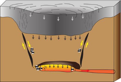 | 2778 Date: 2018-05-23 (Wed) キラウエアでも起きていたカルデラ陥没現象から学ぶ Jascha Polet https氏のツイッターサイトにある、キラウエアカルデラの陥没の動画映像から、5月6日、17日、21日の3日の映像を拝借して、subsiding areaを確認してみました。 ![]() Kilaueaカルデラのsubsidenceの状況(左から5月5日、17日、21日) 17日には直径数百メートルの陥没が発生している。 [2774]で紹介したように、Volcanik ExplosionによるM5.0の地震は5月17日に2回、19日に1回発生しています。 現場写真では、あきらかに、6日には存在しなかった「すり鉢状」のカルデラ崩壊(断層)が17日と21日に発生しています。 「inward-dipping cone-shaped ring faultとは地震爆発の結果として形成された「すり鉢状の形状」であることがキラウエアでも観測されていたことを示しています。 inward-dipping cone-shaped ring faultとは押し領域を構成するExplosion(爆発力)だけでは発生しません。引き領域を形成するImplosion(吸引力)も同時に起きていることが必要です。 通常の地震では、酸素と水素が結合して堆積が減ることが吸引力につながると思われますが、気化爆発が大きな要素になるVolcanik Explosionでも、解離ガス(酸素と水素の混合気体)の爆発(Detnation)結合する要素はあると考えられるので、それが、吸引力の原因になっていると思われます。 あるいは、気化爆発後に気体が液体に戻るプロセスがあるのかもしれませんが、今後化学系の専門家が検討してくださることを期待しています。 |