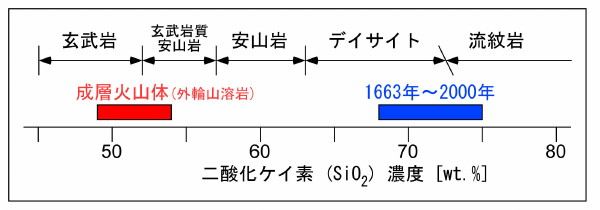 | 2785 Date: 2018-05-30 (Wed) キラウエアでも安山岩マグマが噴出する キラウエア火山の活動で安山岩マグマが噴出しているそうです。 亀裂17から噴出する熔岩は、通常のキラウエア火山で見られるシリカ成分の少ない玄武岩熔岩と違って、シリカ成分が57%も含まれているそうです。 ![]() Lava flows from fissures 16-20 moving across the landscape on May 19, 2018. USGS/HVO. It is different than earlier samples which we have been attributing to 1955magma.It is therefore possib that the magma feeding Fissure17 has been in the rift zone longer−perhaps from1924. Discoverに載っている氏の記事では長く停留することで増えたシリカの多いマグマと通常の(シリカが少ない)マグマの混合比率を以下のように説明しています。 「私の大まかな計算では、亀裂17の噴火のような溶岩を作るためには、60%の玄武岩(49.5重量%のシリカ)と40%のデイサイト(シリカ67重量%)が必要になります。これは、東リフトで沈んだ古いマグマのある部分が、新しいマグマと相互作用した可能性があることを示唆しています。このような混合は他の火山では一般的ですが、このようなハイブリッド溶岩Kīlaueaではまれです。これは、2010年にアイスランドでEyjafjallajökullの噴火の間に起こったと考えられるものに似ています(Kilaueaでの混合では、アイスランドで見たような大規模な爆発を引き起こさないでしょう)。 各種岩石とシリカ成分の比率を有珠火山の研究サイトから紹介します。 ![]() 有珠火山の岩石の組成範囲.成層火山体の形成期には玄武岩〜玄武岩質安山岩が、 1663年以降にはデイサイト〜流紋岩が噴出した 。 活動期によってはっきり違うマグマが出たこと、 日本の火山に多く見られる安山岩を噴出していないことが特徴である(バイモーダル火成活動)。 図中の各岩石の組成範囲はIUGSによる分類に基づく。 大陸性の岩石である花こう岩は水分がある環境下で長い年月かかって結晶化し、体積が少し膨張して比重が小さくなります。 キラウエア火山で同じような結晶化プロセスが94年(1924年からの時間)という短期間で起きるものでしょうか。それならば、大抵の玄武岩も安山岩や花こう岩に変化するのではないでしょうか。 また、60%の玄武岩と40%のデイサイトが混合したというプロセスも安易な考えのように思います。やはり、シリカを多く含んだ大陸性の岩石が再度融解しのではないでしょうか。 石田理論としては、小笠原の西之島噴火で見られる安山岩熔岩のように、ハワイ島にも地下深部には花こう岩が存在し、それが再度融解してマグマ化した成分があると考えています。「2005年の探査掘削中にデイサイトのマグマ(67重量%のシリカ含有)の中まで掘り進んだ」というのも、大陸性として認識されている岩石が再融解したものではないかと推定しています。 火成岩の多様性の原因を説明している図も紹介しておきます。