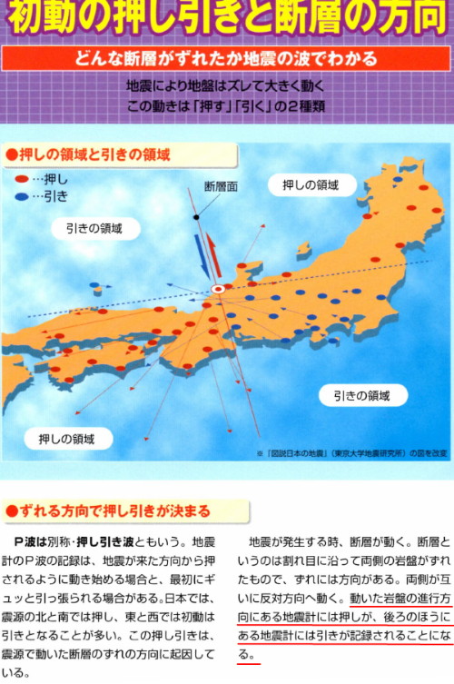 | 2783 Date: 2018-05-27 (Sun) 現代地震学は間違っている証拠の補足 [2775]に示した気象庁の解説図のキャプションで述べた以下の文章の内容を証拠書籍を示して補足します。 「地震学者も、文科省も、気象庁も、「押しと引き」を正しく理解していません。 現代地震学が間違っている証拠なのですが、「地震のすべてがわかる本」(東京大学地震研究所アウトリーチ推進室土井恵治監修、成美堂出版p.104)に載っている次の図と解説文を紹介します。 ![]() 共役関係にある「右ズレ断層」を無視している