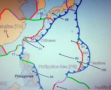 追記: Wikipediaを見ると、最近はアムールプレートなどの小さなプレートがいくつか追加されていて、フィリピン海プレートにもMarianaというマイクロプレートがあることになっています。
