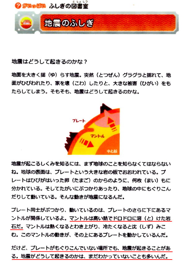 | 3068 Date: 2019-04-06 (Sat) プレートテクトニクスという迷妄からの人類解放運動を起こせ 「マントルは固体である。 固体であるが、長時間のスケールで見ると対流する」と答えないと大学入試に受からない時代において、パナソニックの「ふしぎの図書館」は革新的な解説をしていると思います。ただし、当面は大学受験に不利な知識ですが・・・。 記事の全部が正しいわけではありませんが、「通説」とは違う“勇気ある解説”なので紹介します。 地震の不思議より