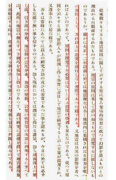 | 3055 Date: 2019-03-24 (Sun) 現代地震学はどこに問題があるのか? 現代地震学は地震波形の解析学という面が強い学問ですが、地震発生のメカニズムに関しては[3043]でも紹介したように、「地殻内部に蓄積された歪力の解放」で完結してしまっています。 何十年も「歪解放が地震」という立場から抜け出せないでいます。もう一度石本巳四雄先生の「地震とその研究」から、現代地震学の問題点を見つめてみます。次の文章をよく吟味していただきたいと思います。 ![]() 石本巳四雄著「地震の研究」p318より 「プレート運動による歪力の蓄積」という概念から脱出できなくなっています。 石本先生なら「粘弾性体の地殻にはプレートが押す力によって歪力は蓄積される筈がない」「何万年もの間、歪が開放されず蓄積していると言うのはナンセンスだ」と言ってプレート論や弾性反発説を拒絶されたのではないでしょうか。 つまり現代地震学は「地震後の波形解析」が中心であり「地震の発生原因」を真面目に探求してこなかったのです。 したがって地下に水を送ることが「爆発を引き起こす」という事に思いが至っていません。世界中で人為地震を引き起こし、民衆を苦しめています。バーゼルしかり、韓国、アメリカしかりです。そして日本でも、長岡や苫小牧で同じ無知をさらけ出しています。 「地震後の波形解析学」に熱中するのでは、地震の発生原因を探る努力さえ放棄されてしまいます。 「歪の開放が地震」という「思考停止」に陥って、本当の地震のメカニズムを探求する努力がなされていないのが現代地震学の大問題なのです。 |
