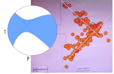 カリフォルニア州南部でM6.4の地震 火災や停電、負傷者も ロサンゼルス(CNN) 米カリフォルニア州南部で4日、ほぼ20年ぶりとなる強い地震があり、震源に近い自治体が非常事態を宣言した。ラスベガスやオレンジ郡でも揺れを感じた。 地震の規模を表すマグニチュード(M)は6.4、震源はロサンゼルスから北へおよそ240キロ離れたモハベ砂漠西部のリッジクレスト付近だった。 米地質調査所(USGS)によると、M6.4の地震の後、M2.5以上の余震が少なくとも159回観測された。最も大きい余震はM4.6だった。 著名地震学者のルーシー・ジョーンズ氏は、50%の確率で1週間以内に再び大きな地震が起きると予想。20分の1の確率で、数日以内にもっと大きな地震が起きる可能性があると述べ、「M5を超す余震があるかもしれない」としている。 同氏によれば、今回の地震の前に、M4.2の前震が起きていたという。 震源に近いリッジクレスト(人口2万8000人)のペギー・ブリーデン市長は非常事態を宣言した。CNNによる市長のインタビューも、余震によって中断する場面があった。 市長によれば、地震によって5件の火災が発生し、ガス管が破断する被害が出ているという。 市内では停電も発生した。国立気象局(NWS)によると、同地の最高気温は37度を超える見通し。 震源があるカーン郡の消防局は、本震や余震に関連した火災や救急出動など20件以上に対応していることを明らかにした。リッジクレストの病院では、患者を別の病院や屋外のテントに避難させ、施設の点検を行った。 リッジクレスト市内で行われた独立記念日関連のイベントでは、子ども65人がステージに上がっていた時に地震が発生し、落下物に当たって男の子1人が負傷した。関係者は、子どもたちが避難した後にステージ後方の壁が崩れ落ちたと話している。 ロサンゼルスでも建物が長い間揺れ続けた。映画制作者のエバ・デュバーネイさんは、「ずっとロサンゼルスに住んでいるけれど、こんなに長い地震は経験したことがなかった」とツイートした。 今回の地震は、カリフォルニア州南部では1999年に起きたM7.1の地震に続く規模だった。1994年にはロサンゼルス郊外のノースリッジをM6.7の地震が襲い、少なくとも57人が死亡している。 サンバーナーディノ郡消防局によると、同郡北部のトロナでは建物や道路などに被害が出ているが、今のところ負傷者は報告されていない。幹線道路の178号線には10センチほどの亀裂ができた。 トロナの自宅にいたエイプリル・ロドリゲスさんは、「家から外に出ようとしてパニックになった。キャビネットや棚の物が全部落ちてきて、ミサイルのように飛び交った」と証言する。 ロサンゼルス国際空港は、滑走路の被害は報告されていないと述べ、平常通りの運航を続けていることを明らかにした。 ーーーーーーーーーーーーーーーーーーーーーーーーーーーーーーーーーーーーーーーーーーーーーーーー USGSのサイトの資料を参考にして、地震爆発論によるこの地震のメカニズムを解説してみます。 ![]() ![]() 幹線道路178号線のアスファルト舗装の道路に出現しているのは、「左ズレ断層」で、しかも「裂開」になっています。 押し円錐軸が水平で、震源が浅い場合に発生する特徴的な断層です。 ![]() CMT解(USGS)によれば、正断層型と水平横ずれ方の中間に区分されるものと同じです。 現実には、正断層は現れず、水平ズレ断層になっています。 上図で説明したように、震源が浅く、押し円錐軸が水平になったからです。 余震の震源が直交する線上に並ぶのも、断層理論では説明できないのではないでしょうか。 断層地震説では二つの節面のどちらかに断層が形成されていることになりますが、どちらに発生するのかは分からないと解釈されています。 しかし実際は、通説地震論で「死語」になってしまっている直交する「共役断層」の関係があるのだと思われます。詳細に調査すれば熊本地震でも出現した共役断層([2300]参照)つまり、もう一つの共役断層が見つかるのではないでしょうか。 出現するとすれば、「右ずれ断層」であり、写真の断層よりも北方に現れるはずです。もちろん地盤が「断裂させる力」に耐えれば、断層が出現しない場合もあるでしょう。 今回の地震も、熊本地震と同様には断層地震説では説明ができないケースだと思います。早く断層地震説から地震爆発説へと地震知識の入れ替えをお願いしたいものです。 参考1: 記事中にある「著名な地震学者のルーシー・ジョーンズ氏」を全く知りませんでした。 とても人気のある方だそうですが、断層地震説は間違っています。 ![]() ルーシー・ジョーンズ来日より 「下に主な断層に対して発震機構解の図がどうなるかを示します。 ただし、断層の走向は東西方向(横方向)として考えています。 ![]() 発震機構解模式図 右横ずれ断層の図を、右に90度回転させた図を考えてみます。左横ずれ断層と全く同じ図になります。 これは、右横ずれ断層か左横ずれ断層かは発震機構解からはわか