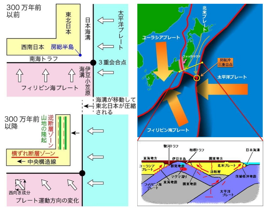 | 3239 Date: 2020-02-18 (Tue) 「親中国的遺伝子」と「親プレート論的遺伝子」を破壊せよ 私が[2136]で紹介した「地球の主治医」の助手だとしたら、標題のように「親プレート的遺伝子の破壊」も手術内容に追加するように願い出るでしょう。 地球(胃の中)の学校では学生たちに、ハワイ諸島と天皇海台の形成はプレートテクトニクスで説明できるという前提で設問が出され、回答を求めています。プレート移動の方向が変化したというのは、「国引き物語」がサイエンスとして扱われているようなものです。 ![]() プレートの移動と海山より ![]() 左は巽好幸教授の解説図(300万年前にフィリピン海プレートが大方向転換:これが東日本大震災(太平洋東北沖地震)の元凶か? 巽好幸 | 神戸大学海洋底探査センター教授)より。 右はネットに載っている解釈図 ネットに載っている解釈図では、平らなプレートが馬の背のような形になって、潜り込んでいくことになっています。 太平洋プレートとフィリピン海プレートは一体どのような構造になっているのか、普通の頭では想像ができません。それとも、これも「抽象論で考えろ」([3151]に紹介した山岡耕春教授のコメント)ということなのでしょうか。(注釈参照) また、伊豆半島は沈みこめなくて、丹沢山地を作ったという話もありますが、“勝手気まま”に御伽噺を作って、学生にサイエンスだと強要しているようなものです。 注釈 アスペリティーの周辺での具体的な物理構造に関しては「抽象論的に把握するべし」(山岡教授談) |