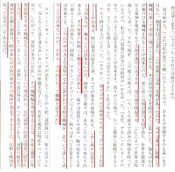 | 3259 Date: 2020-03-12 (Thu) ヴィマーナ解明は宇宙時代の幕開け事件かもしれない 2003年3月8名の米兵がアフガニスタンの洞窟を探索し、古代のヴィマーナを発見したという報道がありました。 その様子が動画に残っていますが、洞窟の前にビデオフィルムを残したまま、兵士たちは消滅(行方不明)しているそうです。ビデオの最後は何かが起きてパニックになっている様子が分かります。 R・A・ゴールなどの存在を知ったので、何らかの宇宙的存在者の関与かもしれないと思うようになり、紹介します。 また、この記事を見て昔読んだロブサン・ランパの著した「古代の洞窟」を思い出しました。([2701]ロブサン・ランパが「第三の眼」で見た世界観参照) ![]() 「第三の眼」を書いたロブサン・ランパの「古代の洞窟」 空中を飛ぶ機器のことなどは、アカシックレコードを読めば見ることは出来るが、触ることは出来ない。だからその洞窟へ行って機械(Vimana)を試すのだ、と師に言われて探検に出かける話です。 読んだ当時は半信半疑でしたが、宇宙的存在者が介在しているのなら有り得る話かもしれないと思い、その一節を紹介します。 ![]() ![]() 「古代の洞窟」の一節 米兵たちは何を見てパニックになったのか、何者かに襲われたのか、わかりませんが、ロブサンの師匠が少年僧だったときにその師匠と一緒に見た光景が述べてあり、ロブサンに語っています。 ![]() ![]() ロブサンの師匠が少年僧の頃に体験した洞窟とそこにある機械類 米兵が探検した洞窟と同じかどうかは不明です。 |