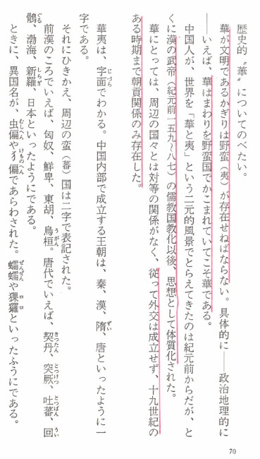 | 3344 Date: 2020-07-01 (Wed) 民主化中国の建設に向けて中華思想を棄てよ、日本は自虐史観を棄てよ 中国の共産党政権は「香港の一国二制度を守る」という国際的な条約を反故にする「香港国家安全維持法」を成立させてしまいました。民主化運動の組織も解散せざるを得なくなっています。 ![]() クリックすると大きな画面になります 中国は南シナ海の島々の領有権をめぐる国連海洋法条約の裁判結果(「南シナ海判決」)をも無視しています。国際的な取り決めを守れない国家なのです。 なぜこのような国際ルールが守れない国家なのか、それを確認しておかないと中国と友好な関係はもてません。 [2635]、[2636]などにも紹介したように、石平氏やペマ・ギャルポ氏(チベット人)は、「たとえ中国が民主化しても「中華思想」を捨てることは無いから、周辺国は武力を高めて押さえ込むしかない」と述べています。 日本の憲法が謳っている「平和を愛する諸国民の公正と信義に信頼してわれらの安全と生存を保持しようと決意した」というような「平和を愛する」国民ではないということを、両氏はよく知っているのです。 したがって問題は中国国民が「中華思想」を捨てられるかどうかが、国際的に信頼できる国家と認定できるかどうなにかかってきます。 中国の国民に知ってもらいたいのは、中華思想がそれほど古くからあるものではないことです。 司馬遼太郎の「この国のかたち」(文芸春秋 三巻「華」)では、漢の武帝の頃に広まったものだと述べています。