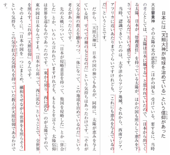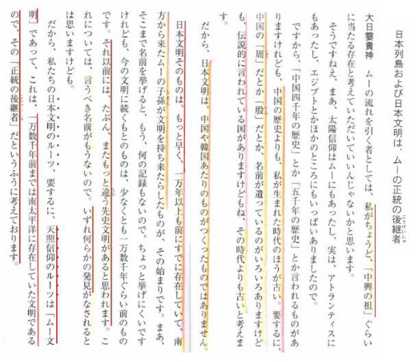 | 3348 Date: 2020-07-04(Sat) 中国は巨大な「世界の孤児」になろうとしているが、日本は中国のコバンザメでいいのか 民主党が強いアメリカ下院の外交委員会副委員長でさえ「世界は中共との戦争に勝たなければならない」と語っていますし、ペロシ下院議長は「世界は中共を非難しなければならない」とのべています。日本では、内閣官房長官が「遺憾砲」を撃っているだけです。なぜ「非難する」といえないのでしょうか。 アメリカは「香港自治法」を可決したそうです。 米両院が中共制裁法案「香港自治法」可決 トランプ大統領に送付 日本の政財界の対中国姿勢は世界から尊敬や信頼を得られるものではありません。親中派であったミャンマーでさえ、反中国に姿勢を転じています。 日本の政党では幸福実現党の主張が一番信用がありますが、マスコミは偏見を持っていっるので報道しません。同党の外務担当及川氏の的確な解説を紹介します。 日本はマスコミや政治組織のあり方を一度解体し、一からの出直しをしなければなりません。歴史の見直しからはじめて、如何に素晴らしい国家理念を持っていたのかを再確認すべきです。 [2658]、[2659]、[2739]などでも紹介しましたが、日本神道の原点にある「太陽信仰」とはどんなものだったのか、天照大神の別名でもある神霊(大日孁貴オオヒルメノムチ)が次のように語っています。 ![]() 天照大神のルーツとその教え『大日孁貴の霊言』より 中共政権は「中華思想」のもとに、全世界を植民地とし、西洋にやられた収奪行為をやり返すのだと考えています。 日本の基本精神は「全世界が幸福になるように天の光を照らす責任がある」という崇高なものです。 ![]() たとえば、トロイの遺跡を発見したシュリーマンは古い神話を信じてトロヤの遺跡を発見しましたが、天御祖神の霊言が神話のようなものだとすれば、いつの日か熔岩の下から、古代の王朝跡が見つかるかもしれません。 天御祖神は「3万年前に私が降臨した」ことが「日本民族の祖(おや)」と考えてよい、と語っています。また「日本列島は中国とつながっていて、あちらから稲作から人からみんな入ってきた」とか「天皇家の子孫は騎馬民族であって、中国から朝鮮半島を通って日本を占領に来た、みたいなことを言っているが間違っている」とも語っています。 少なくとも、秦の始皇帝の命でやってきた徐福が(大和朝廷第7代孝霊天皇時代に)富士山麓に住み着いて書き残した漢字による日本史「富士宮下古文書」には、富士高天原王朝があったと書いています。 天御祖神に関する情報がやがて物的証拠とともに現れて、超古代の日本史が明かされることになるのではないでしょうか。その頃までには現状の情けない日本から脱皮していなければなりません。 |