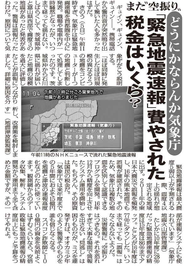 | 3371 Date: 2020-07-30 (Thu) 緊急地震情報の外れ釈明に矛盾がある、地震は爆発現象だ スマホから緊急地震速報が流れて、びっくりしました。 例によって間違い速報のようですが、何度も同じ間違いがあって、もう「狼少年」のようになっているのではないでしょうか。 気象庁は真剣に仕事をして欲しいと思います。 ーーーーーーーーーーーーーーーーーーーーーーーーーーーーーーーーーーーーーーーーーーーー 30日午前9時半すぎ、気象庁は緊急地震速報を関東地方を中心に発表しましたが、震度1以上を観測した場所はありませんでした。これについて気象庁が会見し、謝罪しています。 (社会部・松井康真記者報告) 会見は午前11時半から始まりました。冒頭で担当者が謝罪をしています。気象庁は午前9時38分ごろ、房総半島南方沖に強い地震が発生したとして緊急地震速報を発表し、東京の三宅島で最大震度5強など大きな揺れに警戒を呼び掛けました。しかし、実際には日本中の震度計が設置してある観測所で震度1以上をこの時間に観測した場所はありませんでした。 気象庁によりますと、その2分前に鳥島近海でマグニチュード5.8の地震がありました。この緊急地震速報処理をするにあたりまして実際とは450キロほど離れた房総半島南方沖に震源を決定したため、マグニチュードが7.3と非常に大きなものと決定して緊急地震速報を出したということです。 ーーーーーーーーーーーーーーーーーーーーーーーーーーーーーーーーーーーーーーーーーーーーー 間違って警報を鳴らしたということですが、原因は実際の震源よりも450kmも近くに震源を設定して計算したためだということです。