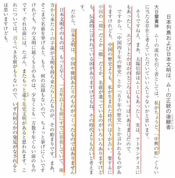 | 3382 Date: 2020-08-13 (Thu) 2020年が未来文明の分岐点になるというシヴァ神の教え [2645]、[2658]にも紹介しましたが、日本の源流にはムー大陸で教えを説いたラ・ムーの「愛の教え」が、「天照信仰」として伝わっています。 ![]() 「天照大神のルーツとその教え 『大日孁貴の霊言』」p.56-57より 大日孁貴はラ・ムー大王の教えの「中興の祖」ということですが、 李登輝氏も述べている「天照信仰」というのは、単に「日本の民俗信仰」ではなく、「全ての神のもとなのだ」という「太陽信仰」の認識があったと、ラ・ムーの後輩に当たるオオヒルメノムチが語っています。([2645]、[2658]参照) ![]() 「天照大神のルーツとその教え 『大日孁貴の霊言』」p.110-112より こうした霊的存在者は「太陽活動による恵」を管理する責任者としてのノーブレス・オブリージを忘れることはなかったのです。「朝貢」とか「搾取」とかの思想とは無縁の存在です。 その流れに合流すれば、中国の民も、中東の民も「太陽の恵み」を受けることが可能になるのではないでしょうか。 2020年がその流れ、「未来文明」の分岐点になる、ということがシヴァ神の教えるところです。 このフェイクサイエンスを打破し、パラダイムシフトを断行することも 未来文明の分岐点での仕事です |