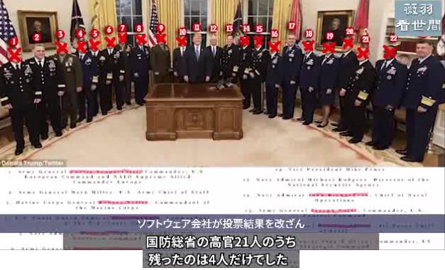 | 3444 Date: 2020-11-16 (Mon) トランプさんが退治すべき沢山の沼地の鰐達 張陽氏が大統領選挙に関するアメリカのすごい闇を報告してくれています。 トランプ大統領はFBIもCIAも信用できず、軍を使ってドイツにあるサーバーを「奇襲」して確保したそうです。もちろん事前にドイツ政府と交渉したそうです。 その内容をもとに、正しい選挙結果を計算すると、トランプさんが410票を獲得する大勝・圧勝であると報告しています。動画から作った、スナップショットを紹介します。カリフォルニア、アリゾナ、ミシガン、ペンシルベニアなどみんな赤色に染まっています。 ![]() スナップショット ![]() スナップショット どうやら、激震が起きているようです。 ----------------------------------------- 米国土安全保障省 (DHS) のサイバーセキュリティ・インフラセキュリティ庁(CISA)の消息筋によると、 13日、連邦下院議員ルイ・ゴーマート氏は米陸軍が今週、ドイツのフランクフルト市で米選挙データを持っているScytl社を突然捜査し、同社が持っているドミニオンサーバを押収したことを明かした。 このほかいくつかの州で大規模な不正が暴露された後、米国土安全保障省(DHS)に属するCISAは12日、公式ウェブサイトで声明を発表し、 理由は選挙期間中に誤解を招くような偽情報を排除するためのようだ。 ------------------------------- 民主党とディープステイトたちが仕組んだクーデターを「罠を張って」待ち受けていたと[3436]紹介したピーツェニクが述べています。トランプ側がやっているのは「逆クーデター」ということです。 クーデター一味がフランクフルトから操作していたサーバーが確保されたのですから、物的証拠は十分にあるわけで、もう逃げ隠れできないでしょう。逆クーデターが成功したことになります。 シドニー・パウエルは「彼らを追いまわして、一人逃さず暴く」と言っていますから、中共の内部にまで追及の手が回るでしょう。 |