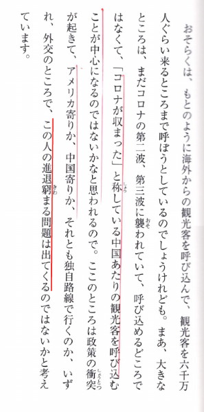 クリントン財団には華僑を通じて上海閥からの資金が流入していることは早くから、報じられていました。大統領でさえ篭絡されるのですから。役人をはめるのは容易い事なんでしょう。日本だって同じことが起きているはずです。 追記: (1)菅首相の認識が少女のような陳薇羽氏の認識より低いことが残念です。 天照大神の霊言のなかで、「二股外交」を執ることで菅首相は「進退窮まる問題が出てくる」といっています。年明けにトランプ大統領の二期目が始まったら、早速進退が窮まるのではないでしょうか。(天照大神よ、神罰は終わったかp.35) ![]() 外交で進退窮まる菅氏 「天照大神よ、神罰は終わったか」p35より 「こんなに読みが浅いのか」・・・と。 |