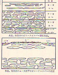 ムー帝国の繁栄を支えていた広大なムー大陸・・・・その地殻の下には、恐ろしいおとし穴が口を開けていたのだ。それは、火山帯によってつくられたガスの詰まった穴・・・・ガス部屋(チャンバー)であった。 というものです。最初からガスの詰まった部屋ができるのではなく、最初はマントルから上昇してきたマグマがマグマプールを形成し、それが、熱解離による圧力増大、大地震の発生(地震の第一段階)、によってガスチャンバーとなり、ついで結合収縮(地震の第二段階)によって、減圧・壊滅というプロセス(新地震理論 8 10 12 )の方が説得力をもつのではないでしょうか。 |