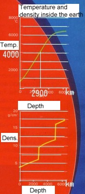 Fig.2 Temperature and density inside the earth . |