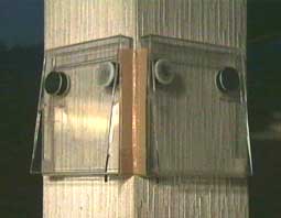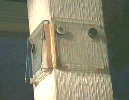 | 柱に取付けた状態 1 ケース内側に駒を同極を向かい合わせてセロテープで張り付けています。 極の違いで2つが白面になっています。 |
