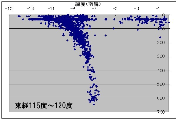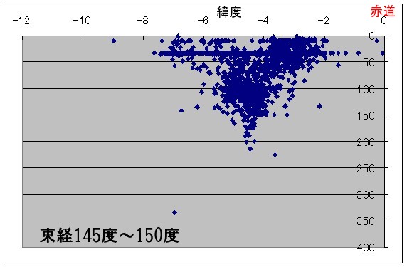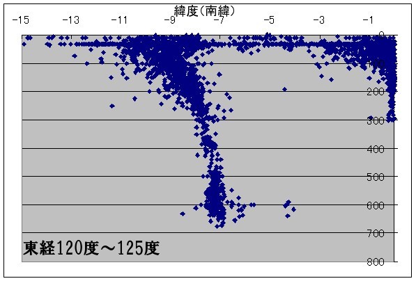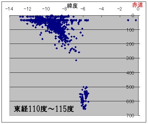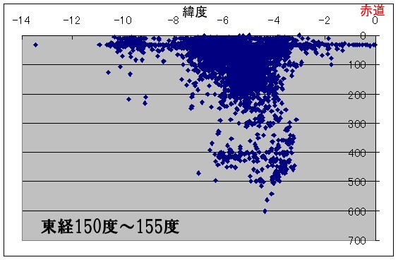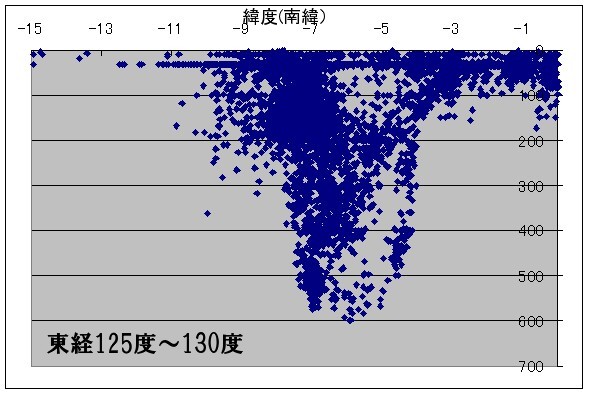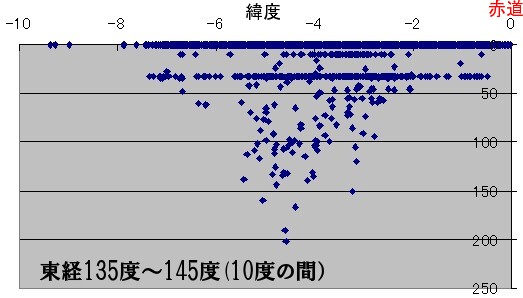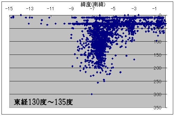 ・135度から145度の間は深発地震の発生が極端に少なくなる。