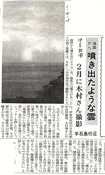 | 平成元年(1989)7月に起きた伊豆東方沖群発地震では、手石海丘で海底噴火が起きました。